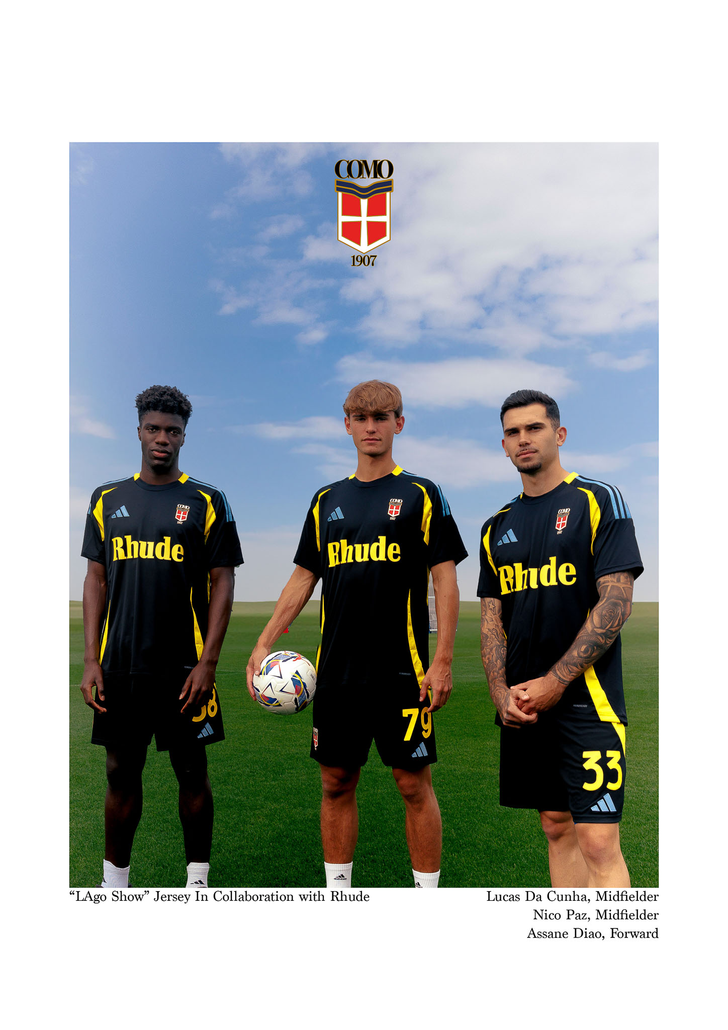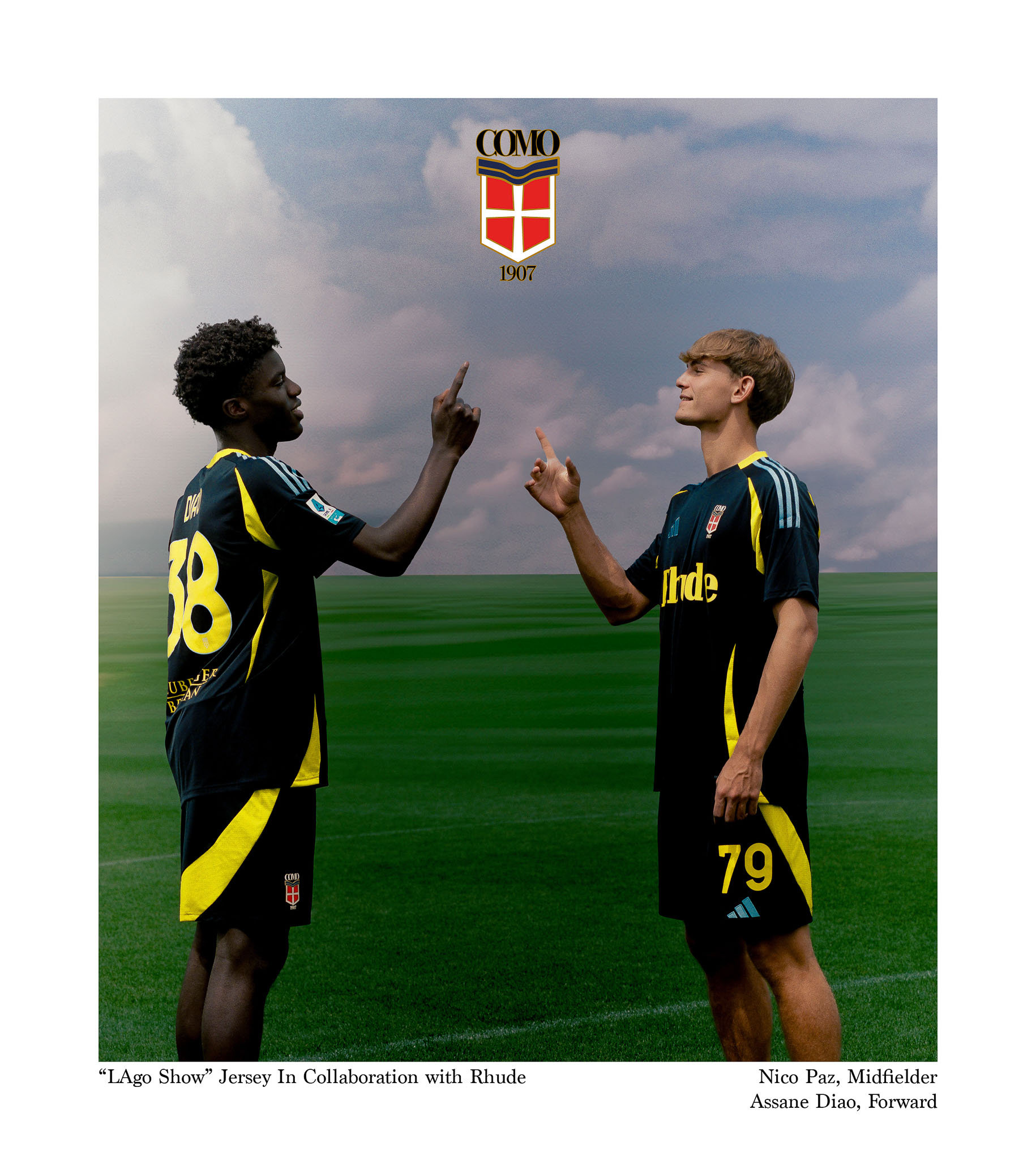 Como, Italy – 25th May— Como 1907 marks its successful return to Serie A with the launch of a bold new chapter: a limited edition fourth kit created in collaboration with RHUDE and Adidas. Designed as a meeting point between the stillness of Lake Como and the pulse of Los Angeles, the jersey is both a tribute to the club’s most historic season in decades and a statement of what comes next.