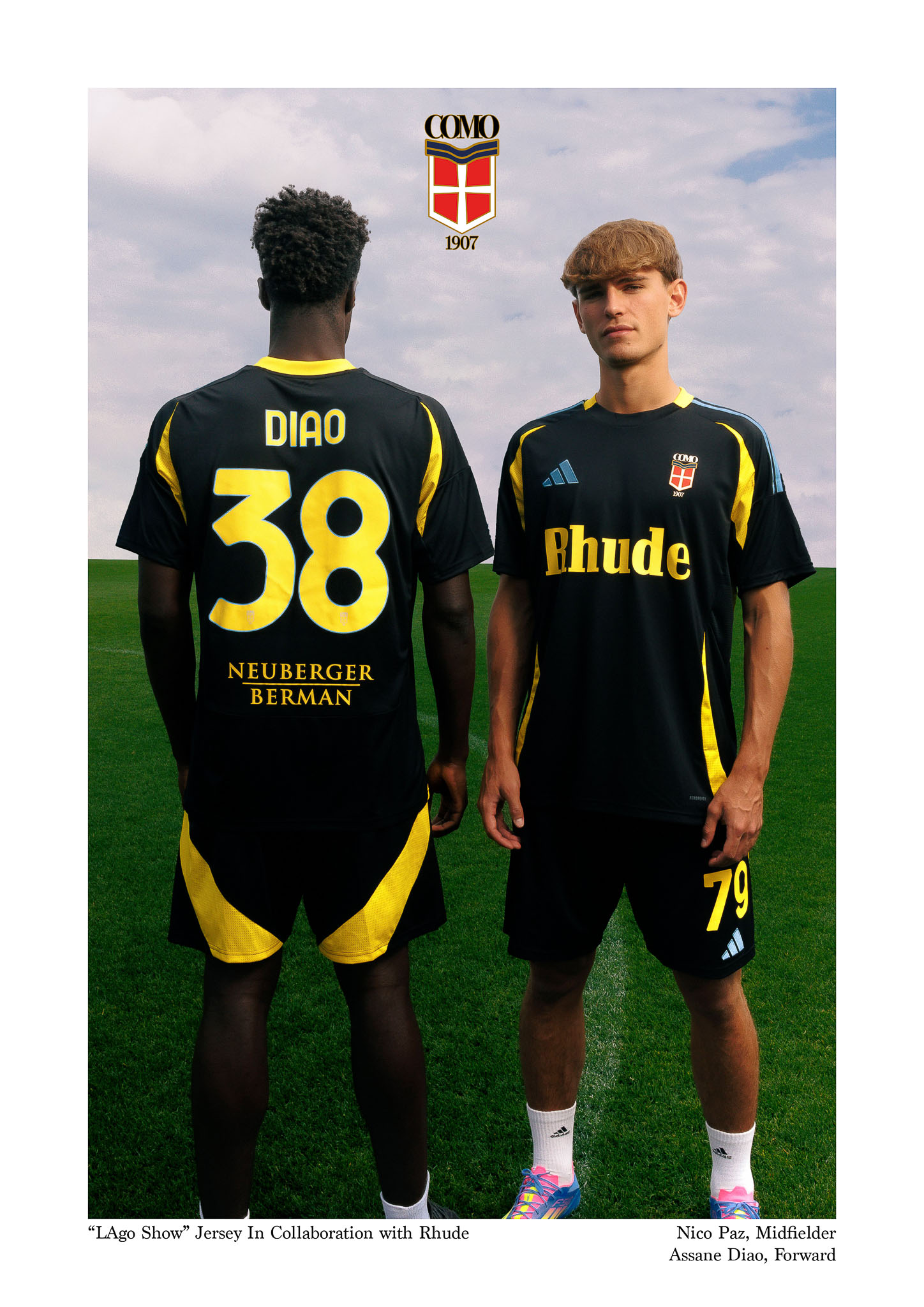 Villaseñor, whose vision has brought RHUDE from LA streetwear into the luxury fashion space, has helped position Como 1907 as football’s most stylistically ambitious project—where matchday and runway share the same moodboard.