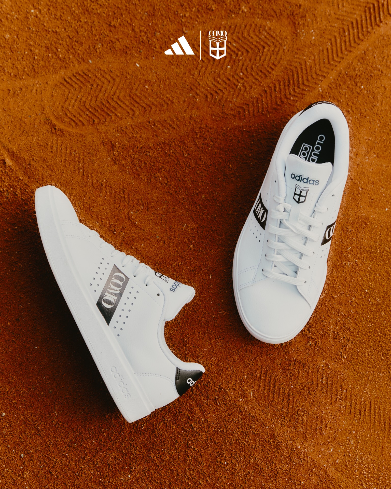 Realizzata in pelle bianca liscia con dettagli neri, la scarpa bilancia atletismo e precisione. La scritta COMO attraversa la fascia centrale, mentre lo stemma del club si posa elegante e sobrio sulla linguetta. Pannelli traforati e cuciture raffinate richiamano la sartoria italiana, portando sofisticatezza a una silhouette classica da campo. Sotto, l’ammortizzazione Cloudfoam regala un comfort delicato, quello che dona una camminata differente, rilassata.