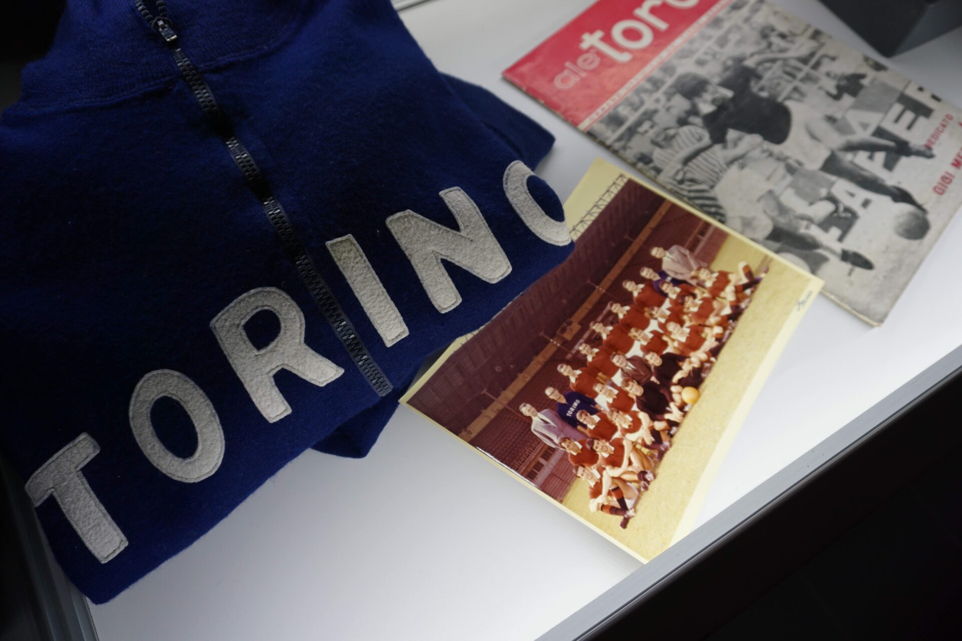 Non si tratta di percorso nostalgico, bensì di un viaggio celebrativo, sviluppato in due filoni. Il primo segue il calciatore: i primi passi a Como, l’ascesa al Genoa e infine al Torino, raccontata attraverso maglie, fotografie, cimeli originali e materiali della stampa dell’epoca. Il secondo segue l’artista e il creativo: i disegni tessili realizzati negli atelier della seta comasca tra il 1958 e il 1959, accanto a dipinti del periodo torinese a sottolineare come le due vite di Meroni vivessero in armonia.