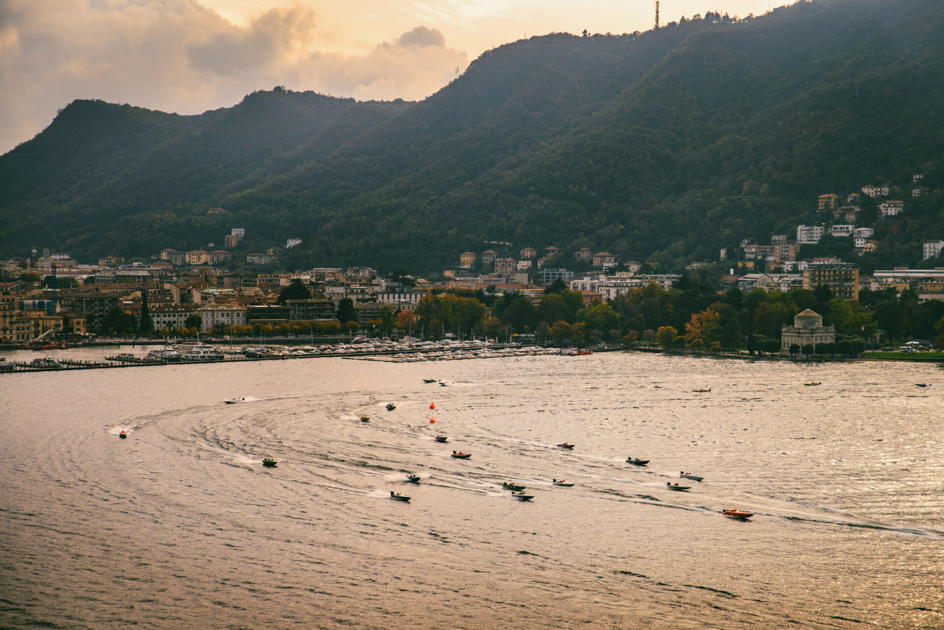 La prima edizione risale al 1949 e da allora la Centomiglia è entrata a far parte del ritmo stesso della città. Il tracciato è cambiato nel tempo, ma l’essenza resta immutata: imbarcazioni costruite per resistenza e velocità percorrono il lago davanti a folle assiepate su terrazze e lungolaghi. È competizione e insieme rito, che ogni autunno si ripete con la stessa attesa.