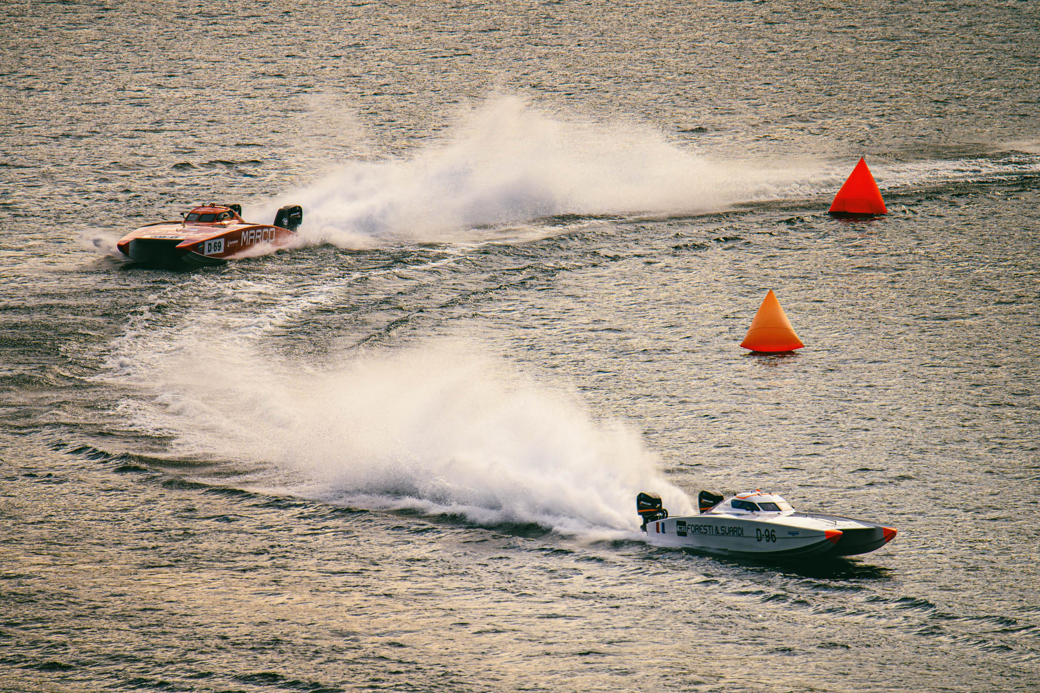 Alcuni tra i più grandi nomi della motonautica hanno gareggiato qui, e record stabiliti su questo percorso resistono ancora. Le imbarcazioni sono parte dello spettacolo: da un lato i bolidi in carbonio più all’avanguardia, dall’altro i racer in legno lucido che evocano un’altra epoca. Tutti portano con sé l’eccellenza dei cantieri italiani, dove design e prestazioni sono curati con la stessa dedizione.